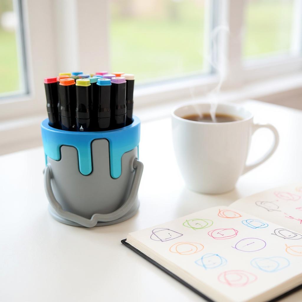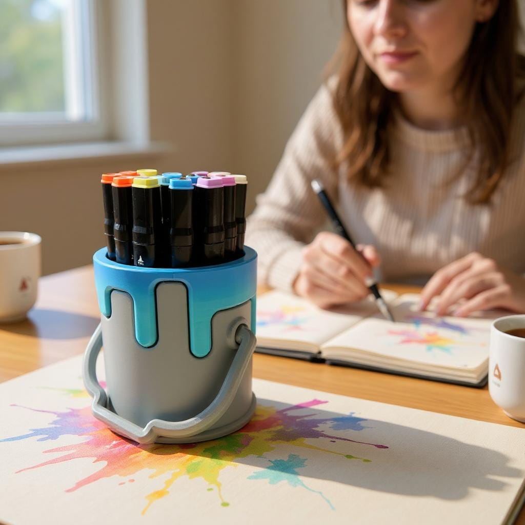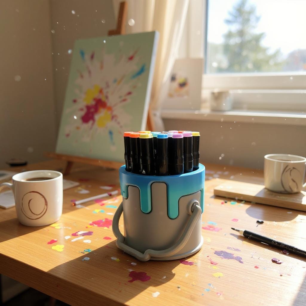3D Printed Paint Bucket Pencil Holder: Artist Desk Organizer