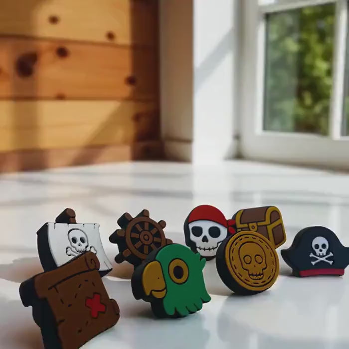Transform your kid’s room into a swashbuckling sea adventure with this set of 8 unique 3D printed pirate-themed drawer pulls – perfect for furniture, treasure chests, or nautical playroom makeovers!