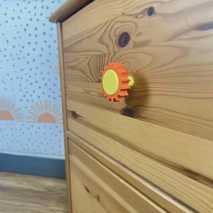 3D Printed Sunshine Drawer Knob: Yellow & Orange PLA Kids Decor