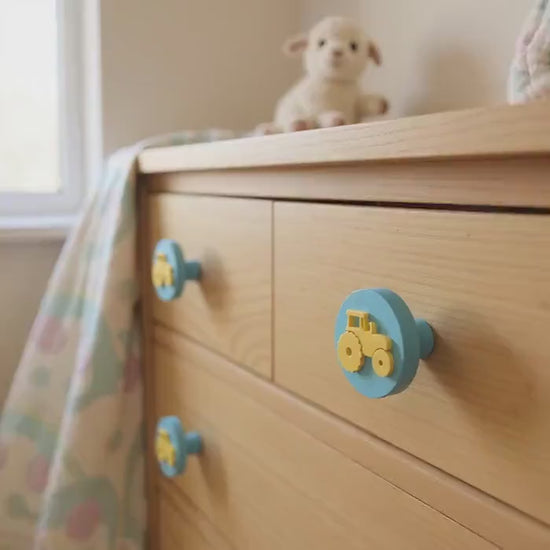 Make furniture fun with these playful, toddler-friendly drawer knobs! 🚗🚜🛵