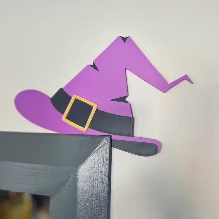 Add a touch of spooky fun to your home this Halloween with this whimsical witch hat door trim decoration!